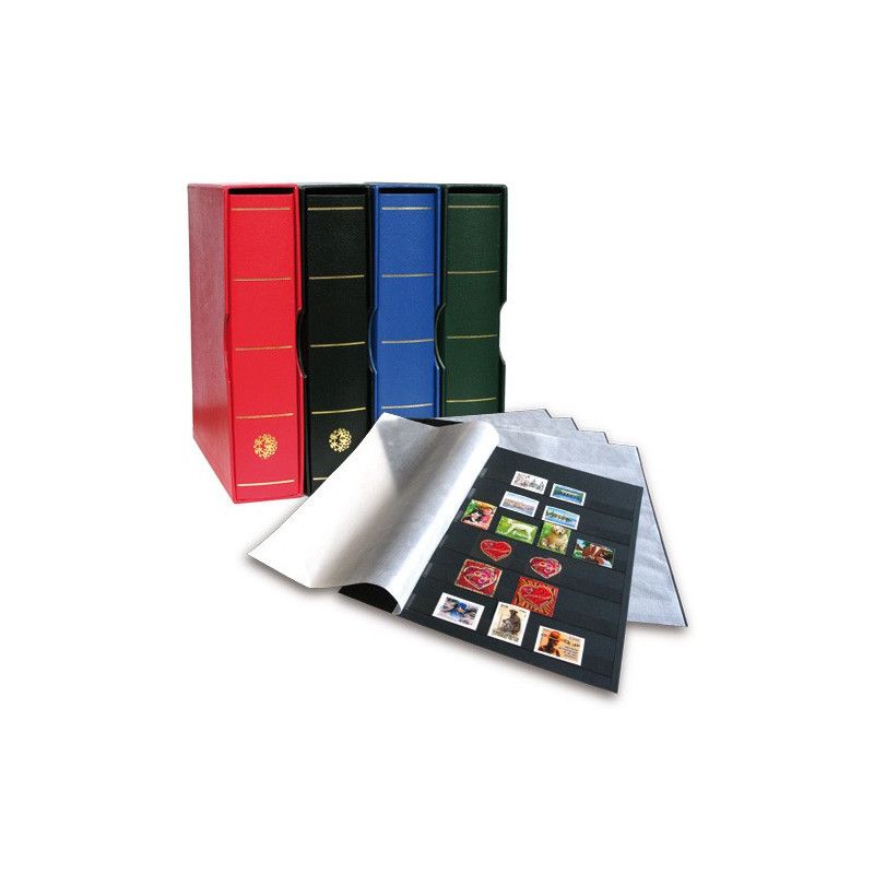 Album Futura Classique garni de 10 recharges C50 recto-verso à 6 bandes avec double intercalaire cristal pour timbres-poste. Reliure à 2 anneaux, couverture ouatinée, livré avec étui de protection.