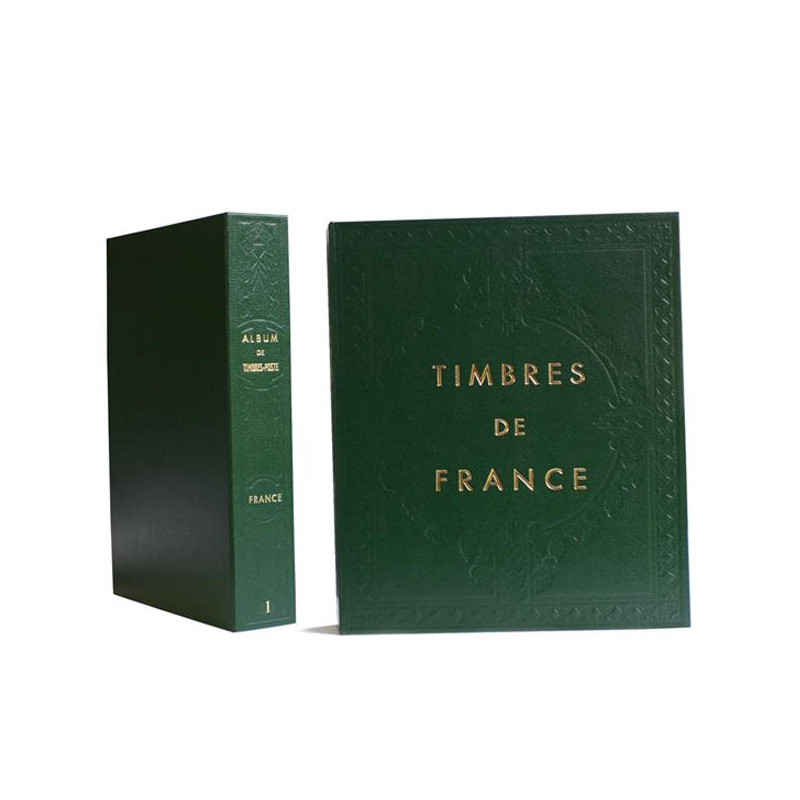 Reliure Futura FO couverture verte ornée des dorures "Timbres de France" pour jeux, intérieurs et recharges à 2 perforations Yvert et Tellier. Maintien optimal des pages grâce au système à vis. Maxi contenance de 200 pages !