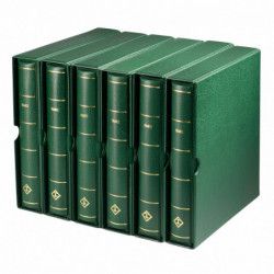 Album Leuchtturm pour collectionner les timbres de France de 2005 à 2009 . Reliure à barre rotative de la gamme Perfect DP de couleur verte avec inscription "France" en lettres gravées or sur le chant et les feuilles préimprimées avec pochettes de protection*. Reliure livrée avec étui de protection.