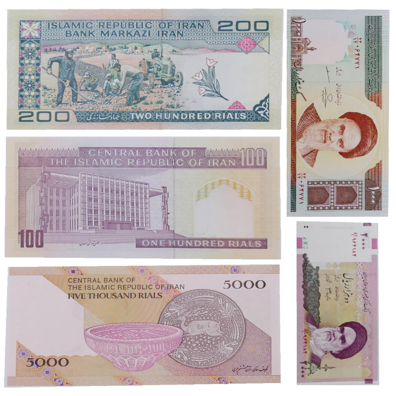 Iran 5 billets de banque neufs.