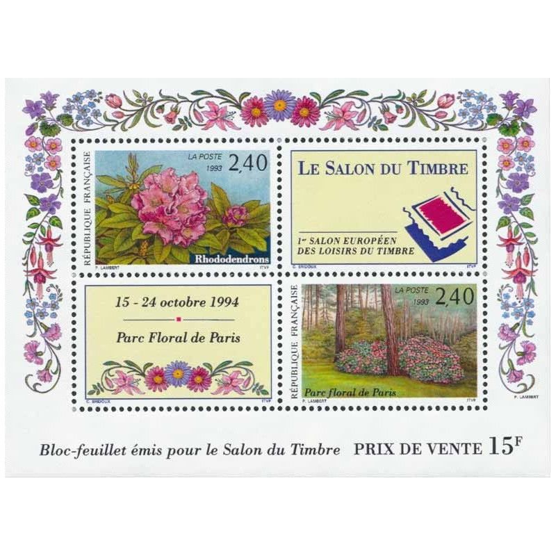 Bloc-feuillet de 2 timbres de France Parc florale de Paris émis pour le salon du timbre en 1993. Numéro Yvert: BF 15 neuf** gomme d'origine intacte.