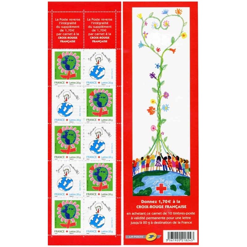 Timbres de France émis en carnet de 10 au profit de la Croix-Rouge Française en 2006. Dessine ton vœu pour les enfants du monde. Numéro Yvert : 2055 neuf** gomme d'origine intacte.