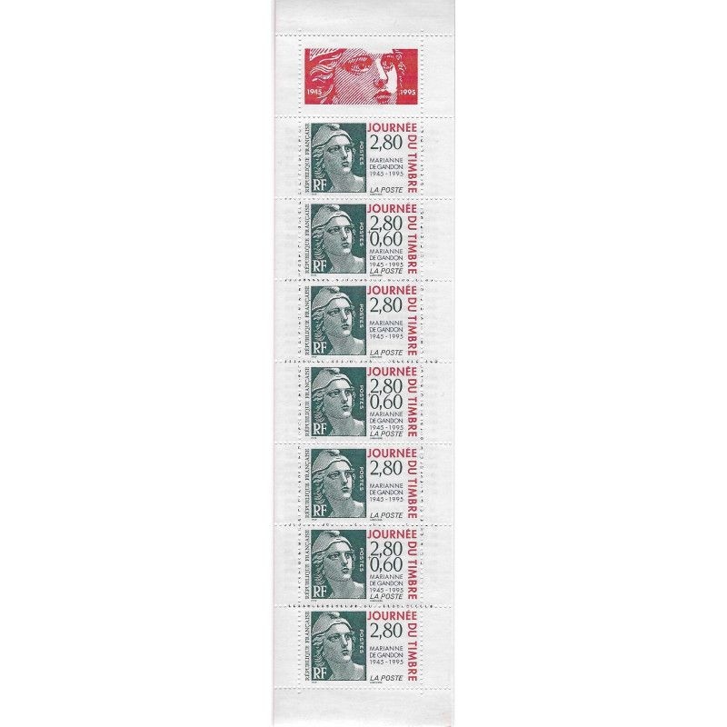 Carnet de 7 timbres-poste dont 3 surtaxés au profit de la Croix-Rouge Française, de la série "Journée du timbre" émis en 1995. Cinquantenaire de la Marianne de Gandon. Numéro Yvert : BC2935 non plié, neuf** gomme d'origine intacte.
