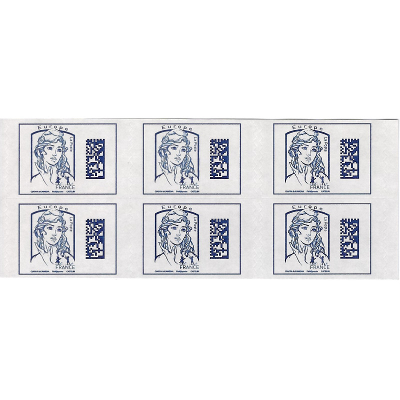 Carnet de 6 timbres Marianne Datamatrix bleu N°1216A-C1.
