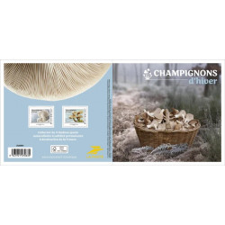 Collector de 4 timbres à validité permanente à destination de France représentant les champignons d'hiver. Timbres autocollants. Livré plié en deux.