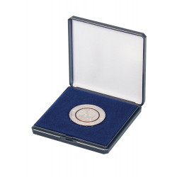 Coffret avec intérieur à mémoire de forme dans lequel toutes tailles de monnaies peuvent être insérées par simple pression (la forme, après pression de la monnaie, reste permanente mais peut être superposée par pression d’une monnaie de plus grande taille). Adapté aux monnaies jusqu'à Ø 50 mm. Matériel: plastique. Couleur: bleu foncé