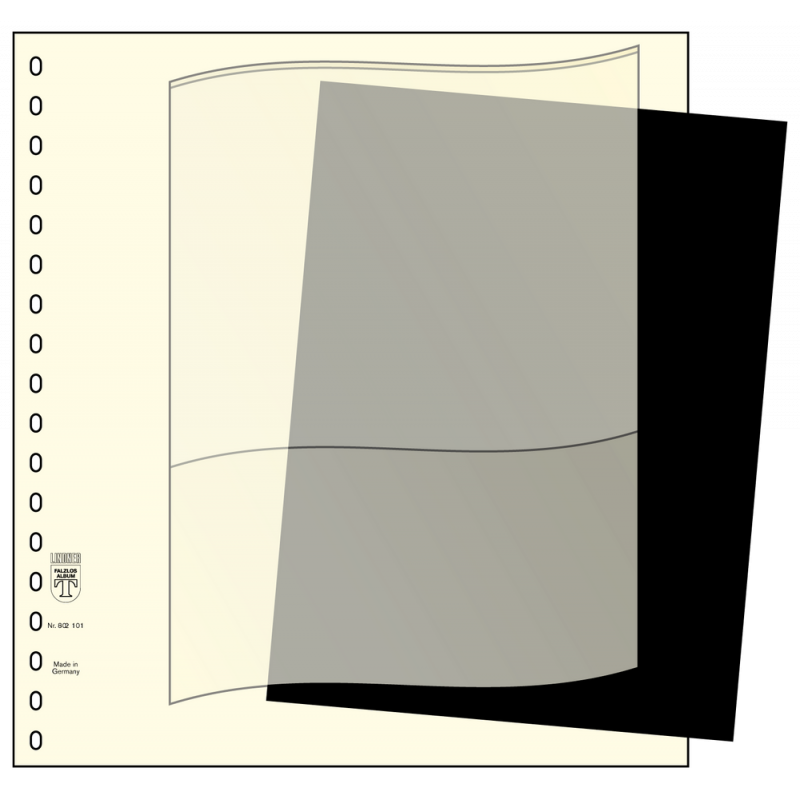 La feuille intercalaire noire pour descriptif, est insérée entre la feuille cartonnée et la pochette plastique. Elle peut être retirée à tout moment. Les feuilles intercalaires noires sont idéales pour une mise en avant de timbres particuliers en forme et en couleurs. Référence Lindner: 802018