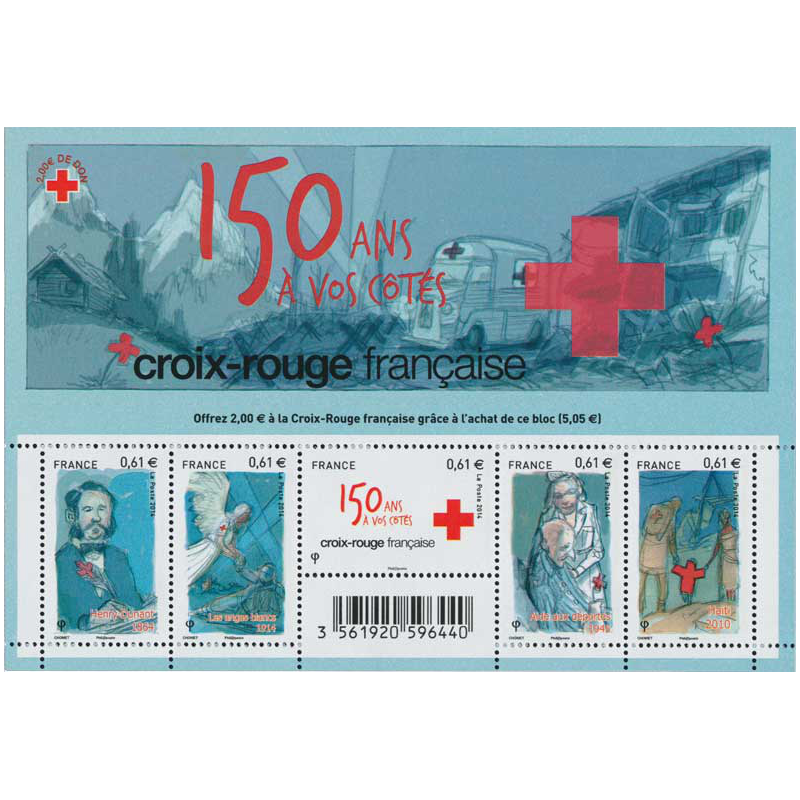 Feuillet de 5 timbres gommés émis par La Poste pour les 150 ans de la Croix-Rouge Française. Numéro Yvert : F4910 neuf** gomme d'origine intacte.