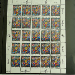 Dans un album Lindner, lot de timbres, blocs, mini-feuilles, carnets, enveloppes premier jour du monde. Pays dont France, Nations Unies. Timbres neufs gomme d'origine intacte en grande majorité. Bel petit ensemble. Excellente qualité générale.