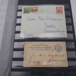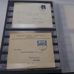 Dans un classeur, lot de lettres, entiers postaux, cartes postales du monde de la période classique et semi moderne. Plusieurs pays comme Turquie, Egypte, Italie, Chili, Brésil, France et plus. Très grande majorité voyagée avec des belles oblitérations. Bel ensemble à étudier.