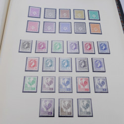 Dans un album montée sur des pochettes, belle collection timbres de France émis de 1940 à 1945. Complet avec des nuances, petites variétés. Timbres neufs** gomme d'origine intacte et timbres neufs* gomme d'origine avec charnière.