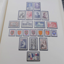 Dans un album montée sur des pochettes, belle collection timbres de France émis de 1946 à 1972. Complet avec des nuances, petites variétés. Timbres neufs** gomme d'origine intacte en grande majorité et timbres neufs* gomme d'origine avec charnière. Excellente qualité générale.