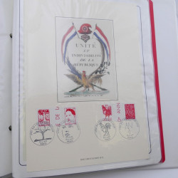 Dans un album, collection timbres commémoratifs de France oblitérés. Belles thématiques avec cartes maximum, enveloppes d'émission et timbres oblitérés. Doubles et multiples. Très bien présentée. Excellente qualité générale.