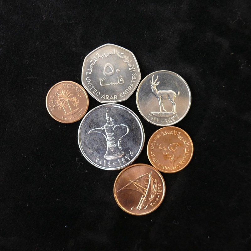 Emirats Arabes Unis 6 monnaies de collection tous différentes. Etats TTB à SUP selon code officiel. Livrées en pochette numismatique.