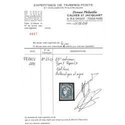 Émission dite Bordeaux 20 centimes bleu type II report 3 case 9 timbre de France émis en 1870. Numéro Yvert : 45Cb nuance exceptionnelle outremer, oblitération légère, effigie dégagé sans aminci, superbe. Rare. Cote 4500 €. Livré avec 2 certificats Calves et Albert Cohen Sabban.
