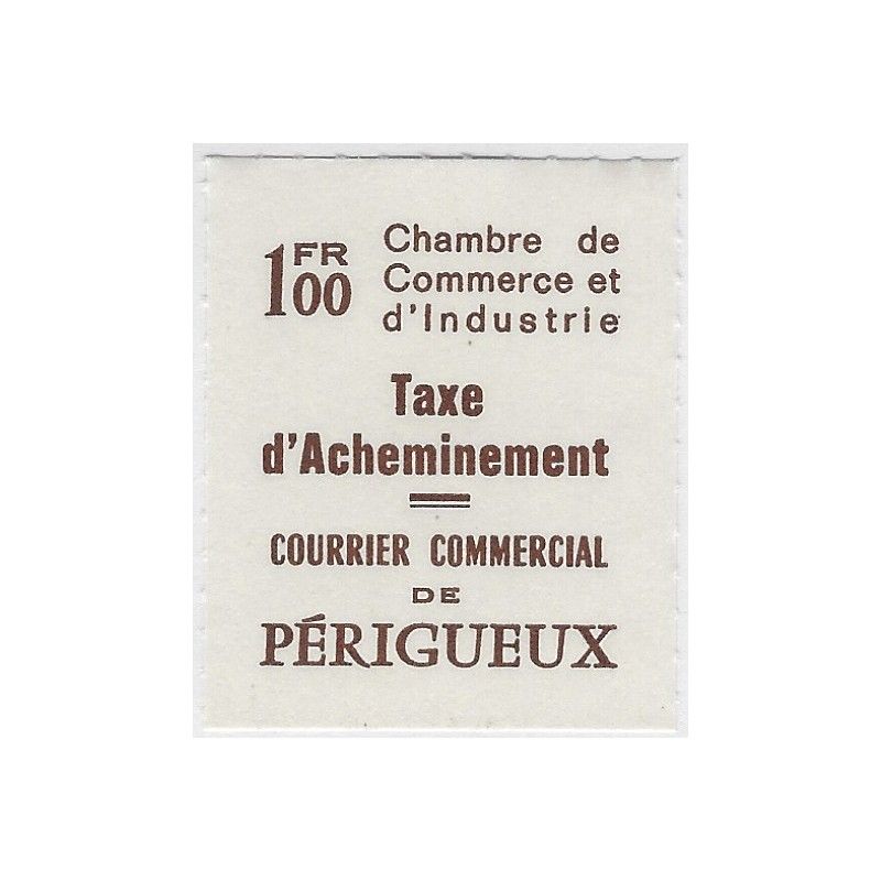 Timbre de grève émis par la Chambre de Commerce Périgueux en 1974. 1 franc brun sur blanc. Numéro Maury : 33 neuf sans gomme, superbe. Cote: 100 €