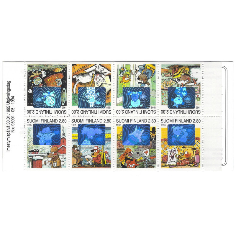 Timbres avec hologrammes de Finlande émis en 1995 pour Saint Valentin. Numéro Yvert : C1242 carnet de 8 timbres neufs** gomme d'origine intacte.