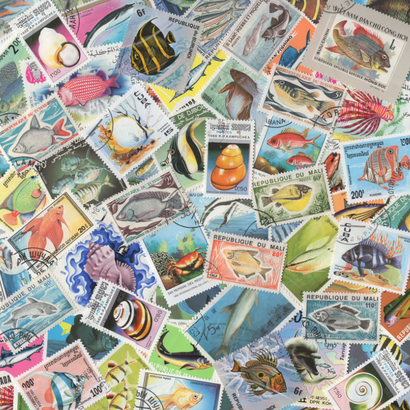 Pochette contenant 1000 timbres thématiques sur la faune marine, poissons, coquillages, neufs et oblitérés, premier choix. Les pochettes de timbres sont idéales pour compléter votre collection et garder l'esprit "loisir" de la philatélie !